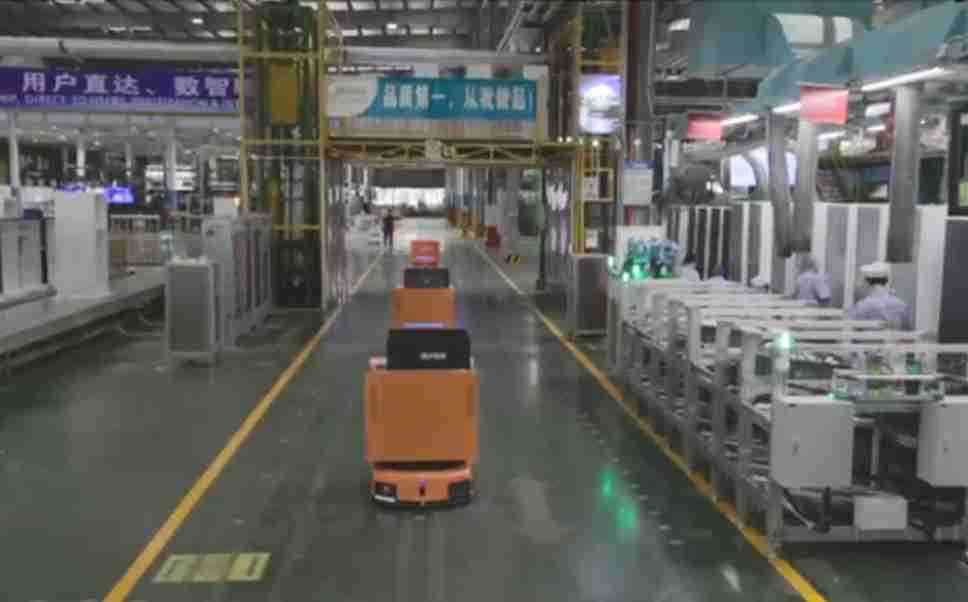 为车载冰箱物流配送打造的智能解决方案,,,包含产中物流通过潜伏举升AMR搬运至线边,,,产后成品物流智能仓储,,流程包含产中物流智能齐套入库,,线边安灯叫料AMR智能配送至线边,,,成品入库、、、、出库,,,通过无人堆高车机器人,,智能仓储管理替代人工作业管理,,,实现更高存储、、更高效率、、更具柔性化的解决方案。。