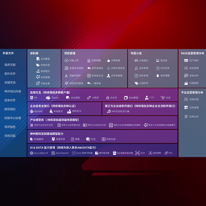 医疗器械产品上市前,,,,要熟悉严格与繁复评审标准,,,,整理分析监管机构指导文件中的海量信息。。。。企业急需一个智能化解决方案,,提升知识管理效率,,,提高评审通过率,,以提升其市场竞争力。。